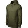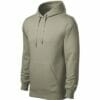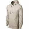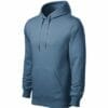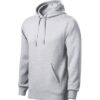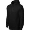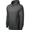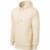 prosty krój ze szwami bocznymi, kaptur z podszewką ściągany za pomocą sznurka, wewnętrzna tylna część lamówki wzmocniona kolorową taśmą z materiału wierzchniego, kieszeń typu kangurka, dolny ściągacz i mankiety rękawów z dzianiny ściągaczowej 2:2 z dodatkiem 5 % elastanu, czesana strona wewnętrzna