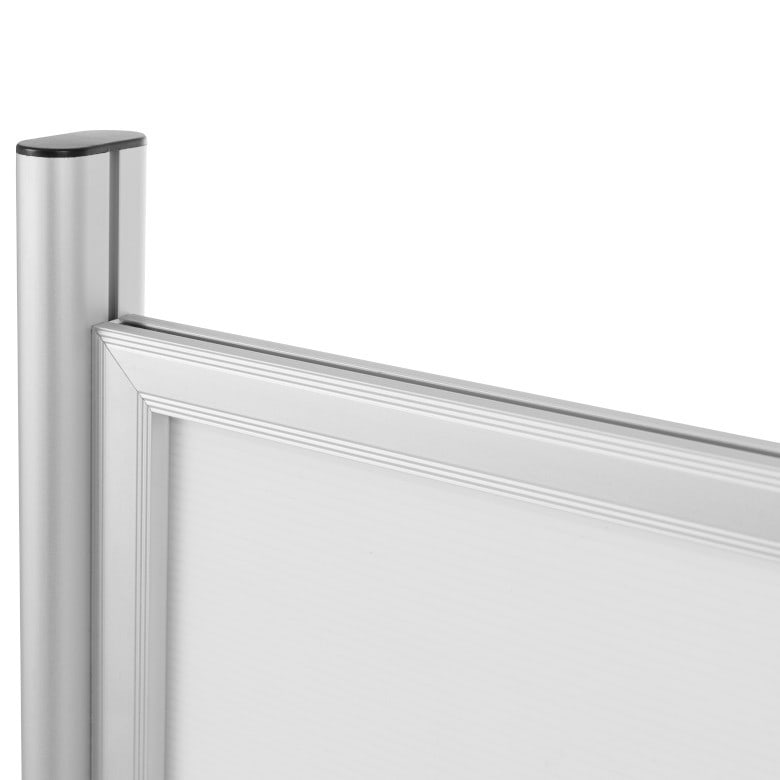 Dwustronny stojak plakatowy, który idealnie sprawdzi się praktycznie w każdej przestrzeni publicznej. Wykonany z trwałego aluminium, dodatkowo bardzo stabilny. Jego niewątpliwym atutem jest bardzo łatwa wymiana grafiki poprzez wsuwaną tablicę.