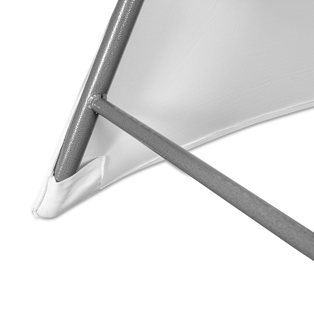 Został wykonany z wysokiej jakości materiału poliestrowego o dużej zawartości elastanu. Dzięki użyciu takiego materiału pokrowiec dopasowuje się do konstrukcji krzesła, nie marszczy się, nadaje się do prania i nie wymaga prasowania.