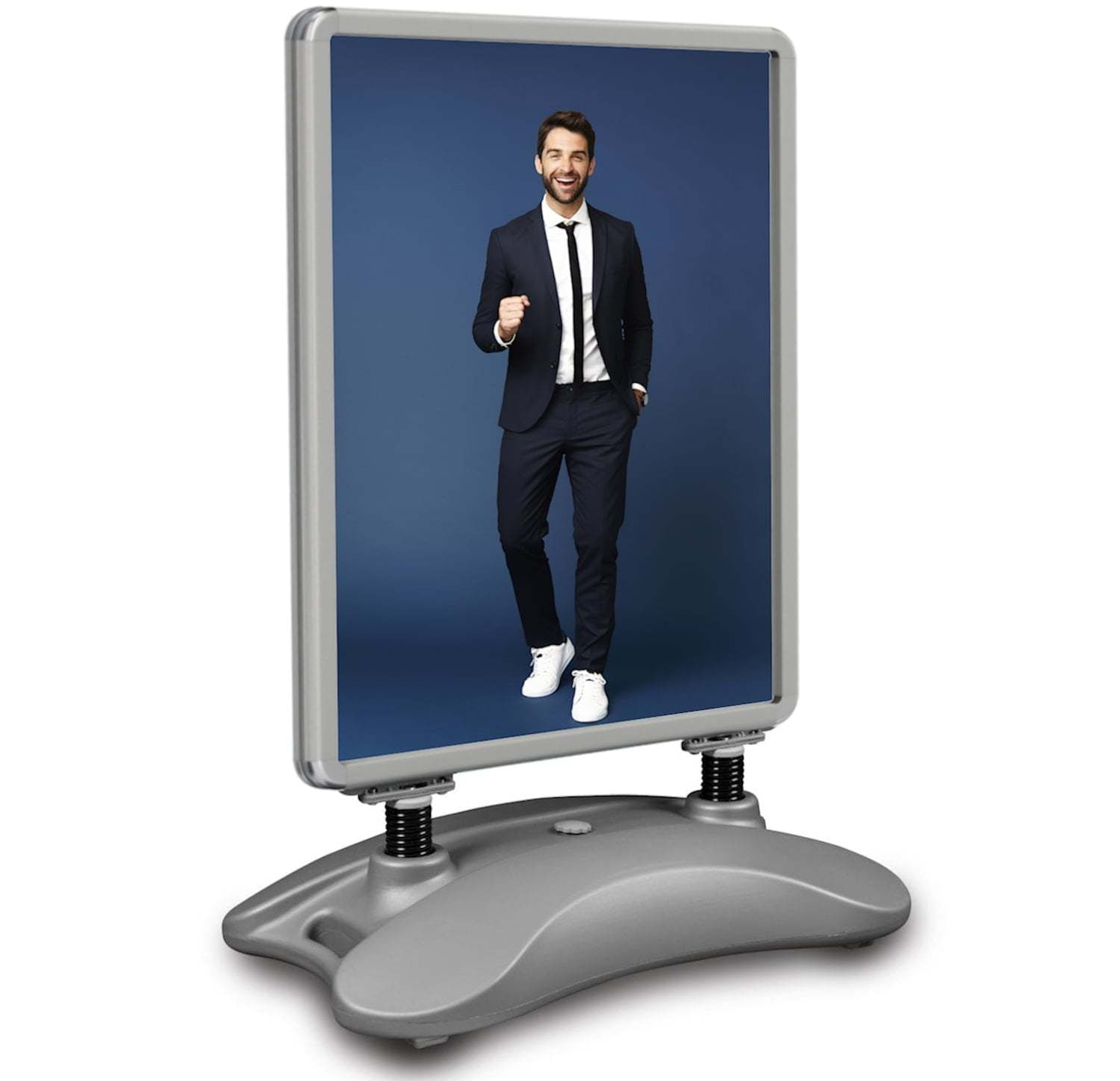 Zdecydowanie najbardziej popularny potykacz do użytku zewnętrznego. Rama osadzona jest na sprężynach, dzięki czemu potykacz dostosowuje się do siły wiatru. Podstawą jest zbiornik na wodę. Po jego wypełnieniu potykacz staje się bardzo ciężki, a jego przenoszenie jest możliwe dzięki rączce i kółeczkom zamontowanym w podstawie. Plakat zatrzaskiwany jest na zasadzie ramki OWZ. Gruba osłona przykrywająca plakat posiada filtr UV, który zabezpiecza wydruk przed utratą kolorów pod wpływem promieni słonecznych.