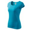 dopasowany krój ze szwami bocznymi, dekolt wykończony materiałem wierzchnim, szew wzmacniający na ramionach, bardzo krótkie rękawy, wykończenie silikonowe