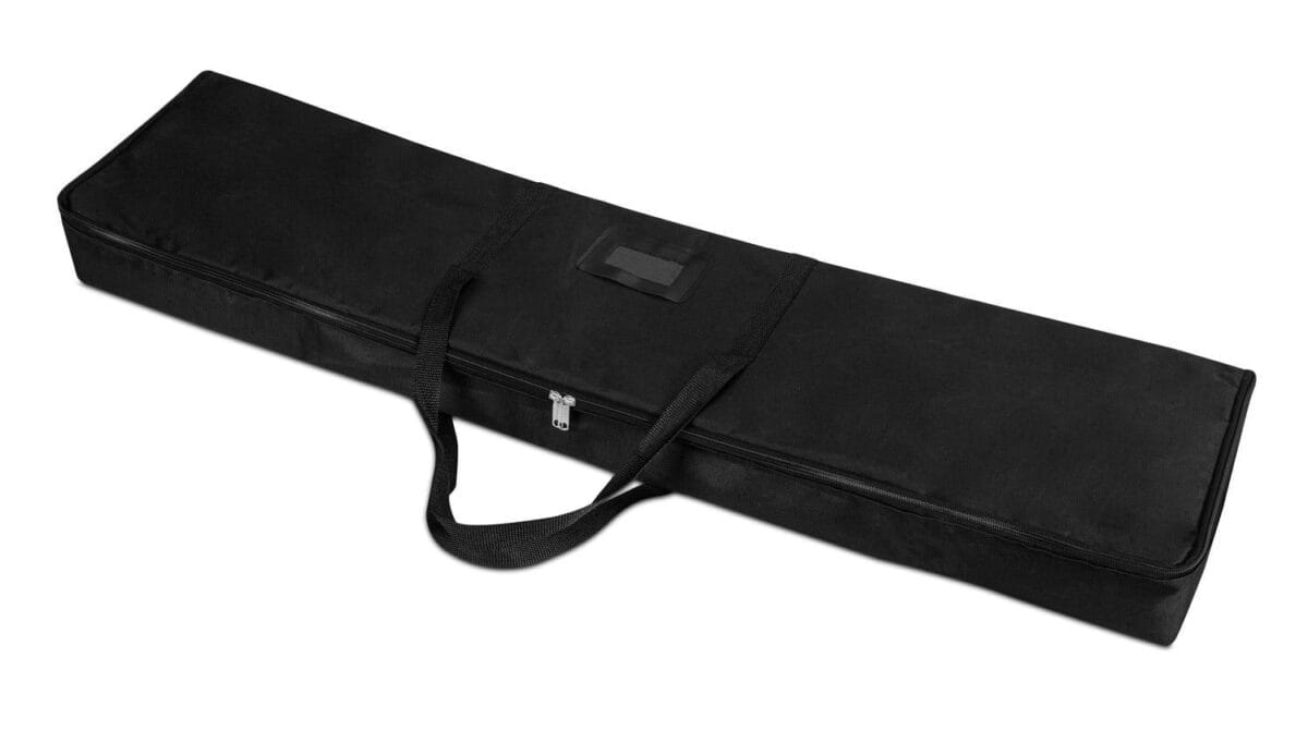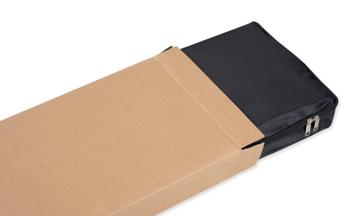 Szeroka kaseta z mocnego aluminium wraz ze srebrnymi boczkami to z kolei pewność dużej stabilności całego systemu. Dwuwarstwowa torba z długim zamkiem zapewnia bezpieczny transport produktu.