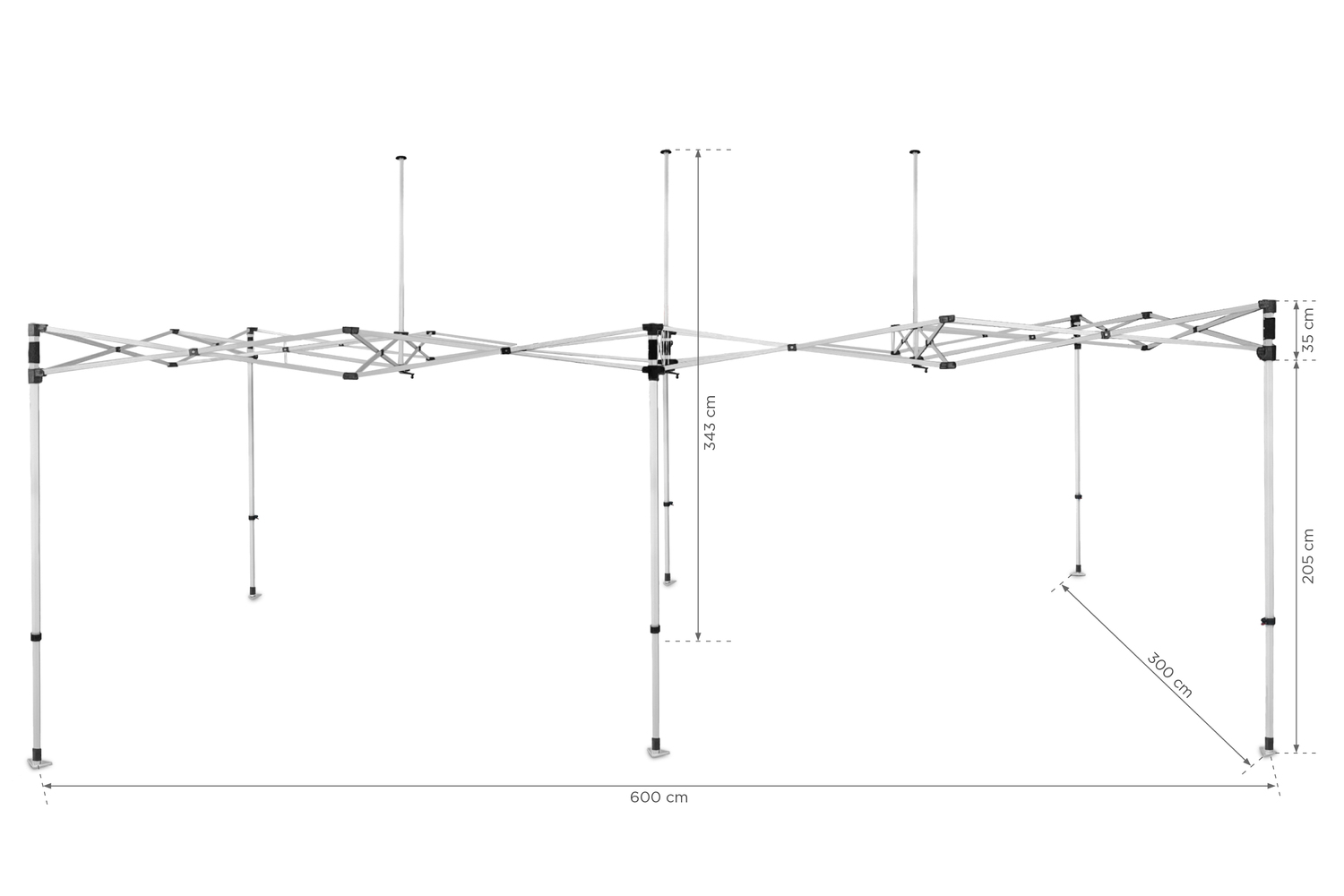 Zestaw zawiera: składany stelaż namiotu Everest 3×6, akcesoria montażowe (6 szpilki, 6 linek o długości 3,3 m), torbę transportową na kółkach.