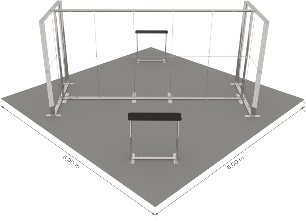 STOISKO targowe 36 m² (6×6) WYSPa – ELEMENTY ZESTAWU: