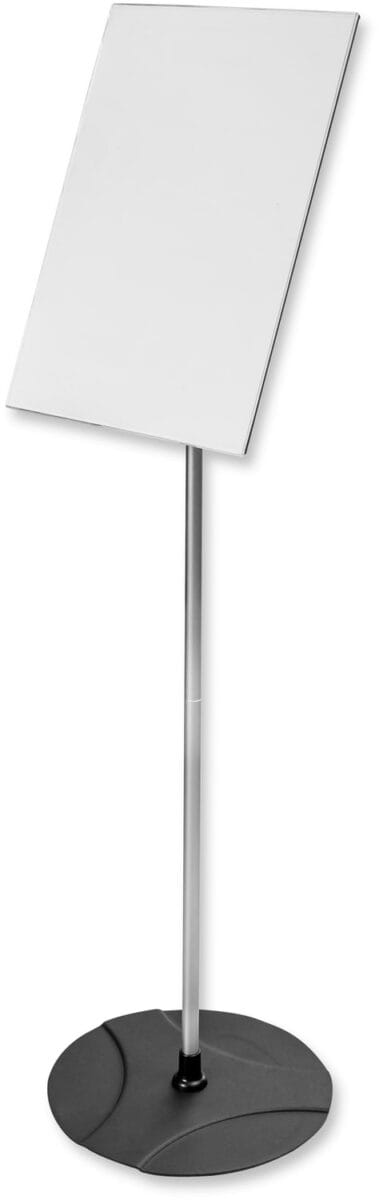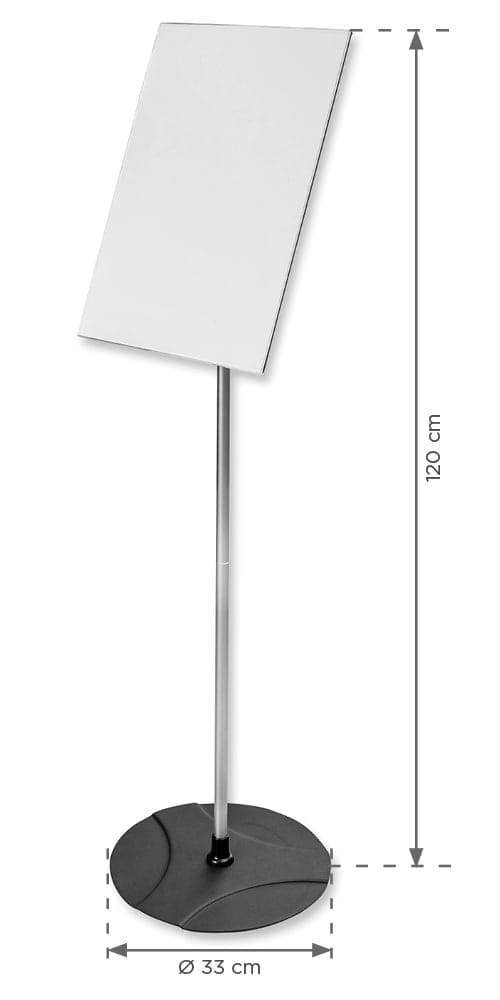 Elegancki, lekki a zarazem bardzo stabilny stojak z regulowanym kątem nachylenia ramy. Produkt idealnie sprawdzi się w każdej przestrzeni publicznej do prezentacji informacji czy wskazywania kierunków.