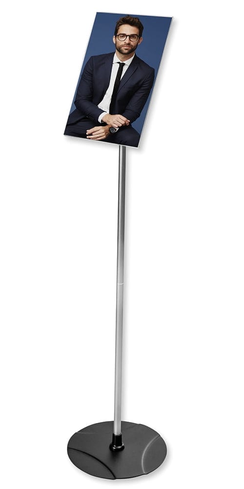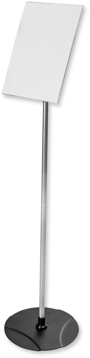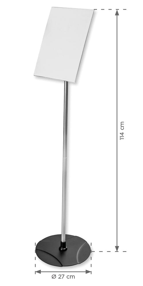 Elegancki, lekki a zarazem bardzo stabilny stojak z regulowanym kątem nachylenia ramy. Produkt idealnie sprawdzi się w każdej przestrzeni publicznej do prezentacji informacji czy wskazywania kierunków.