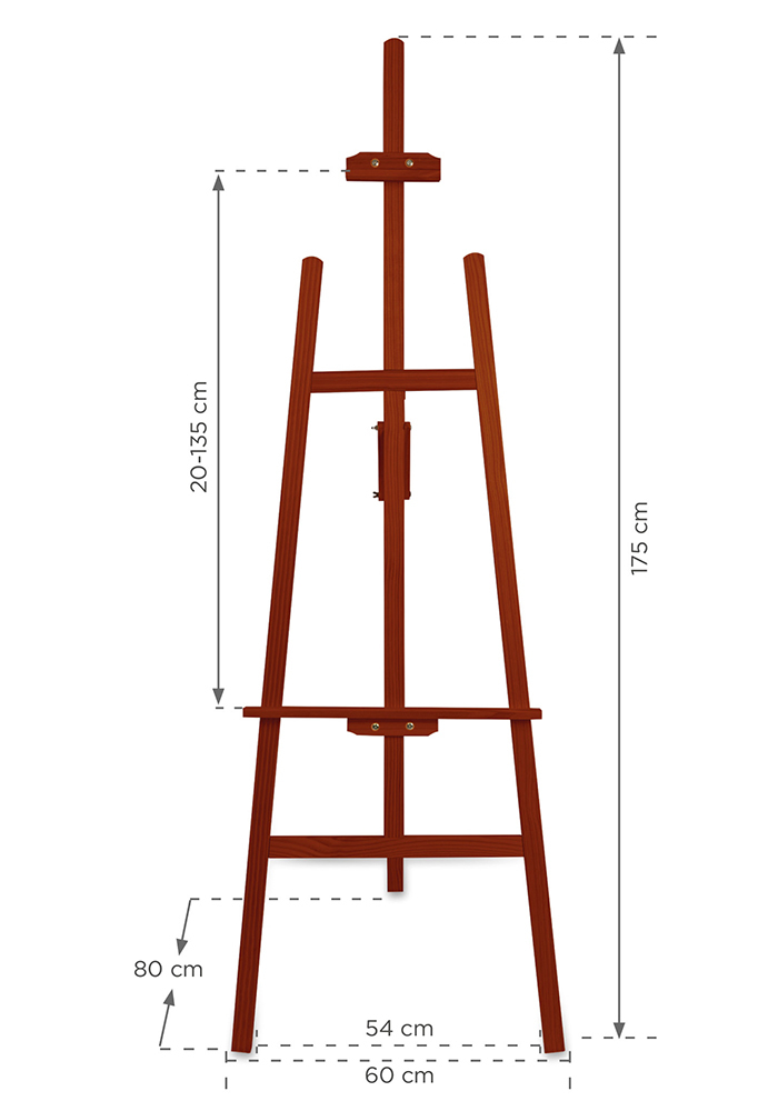 Drewniana sztaluga z drewna sosnowego o bardzo stabilnej, a zarazem lekkiej konstrukcji.