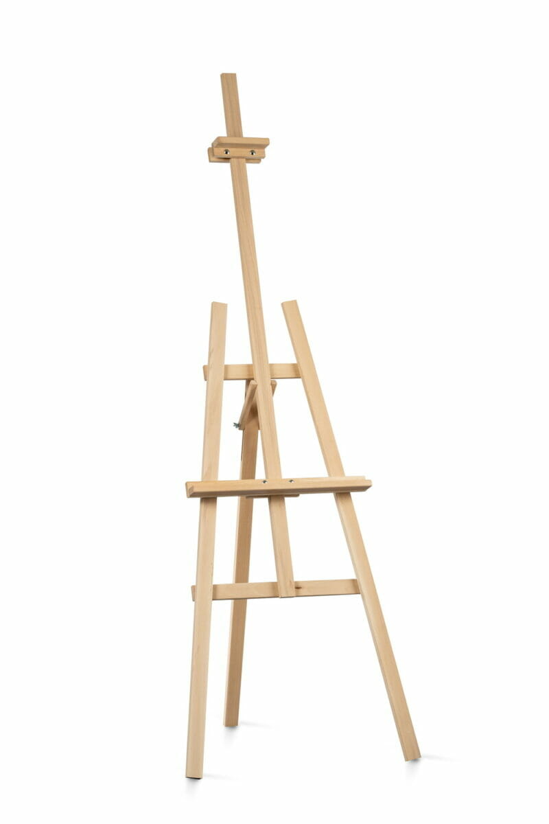 Drewniana sztaluga z drewna sosnowego o bardzo stabilnej, a zarazem lekkiej konstrukcji.