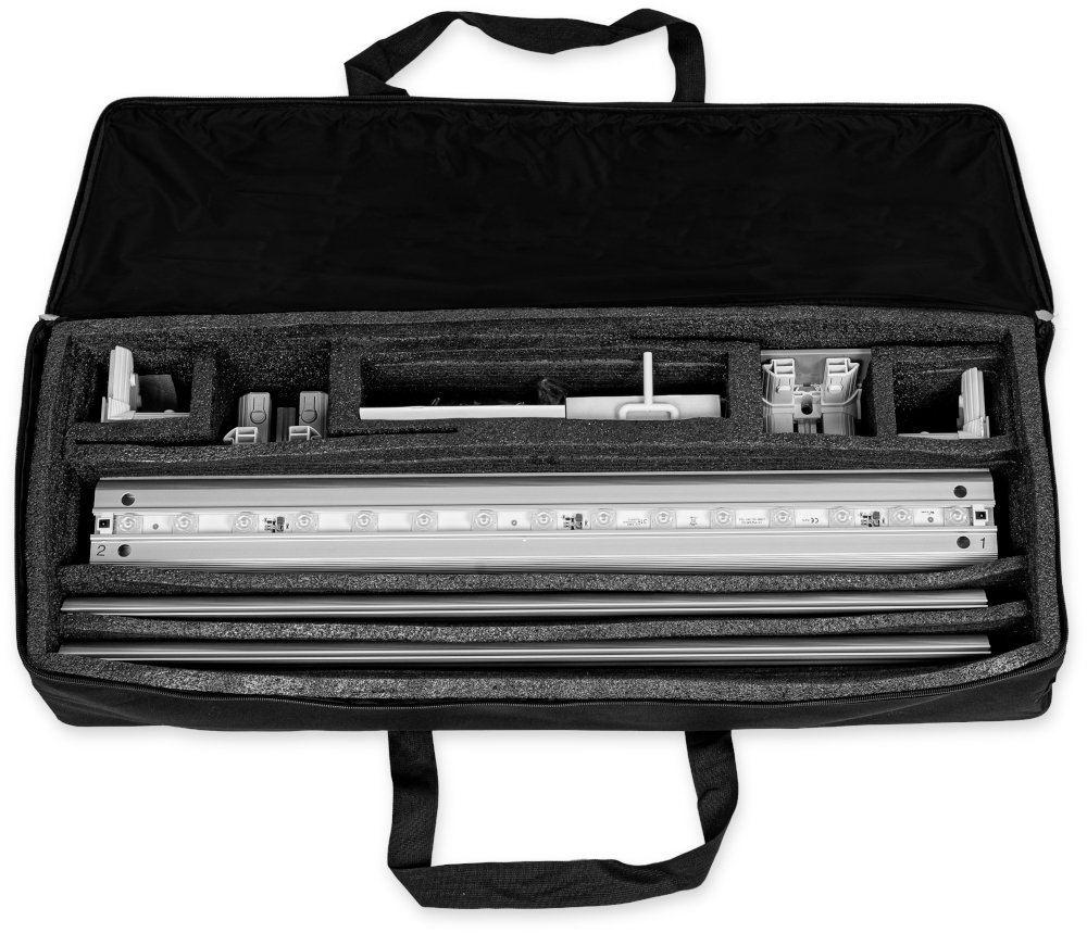 Zestaw zawiera: trybunkę LUMIX™, zasilacz, torbę transportową na kołkach, indywidualny karton.