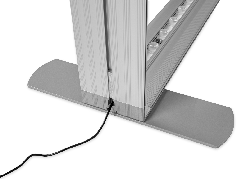 Idealne dopełnienie systemu LUMIX™. Dwustronna trybunka o szerokim, aluminiowym profilu (12 cm), z wbudowanym oświetleniem LED. Wydruk montowany za pomocą taśmy silikonowej oraz montaż bez narzędzi to kolejne zalety oferowanego produktu.