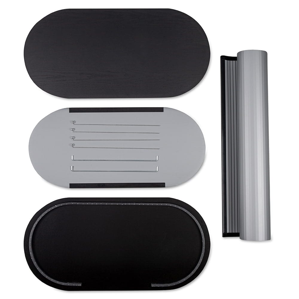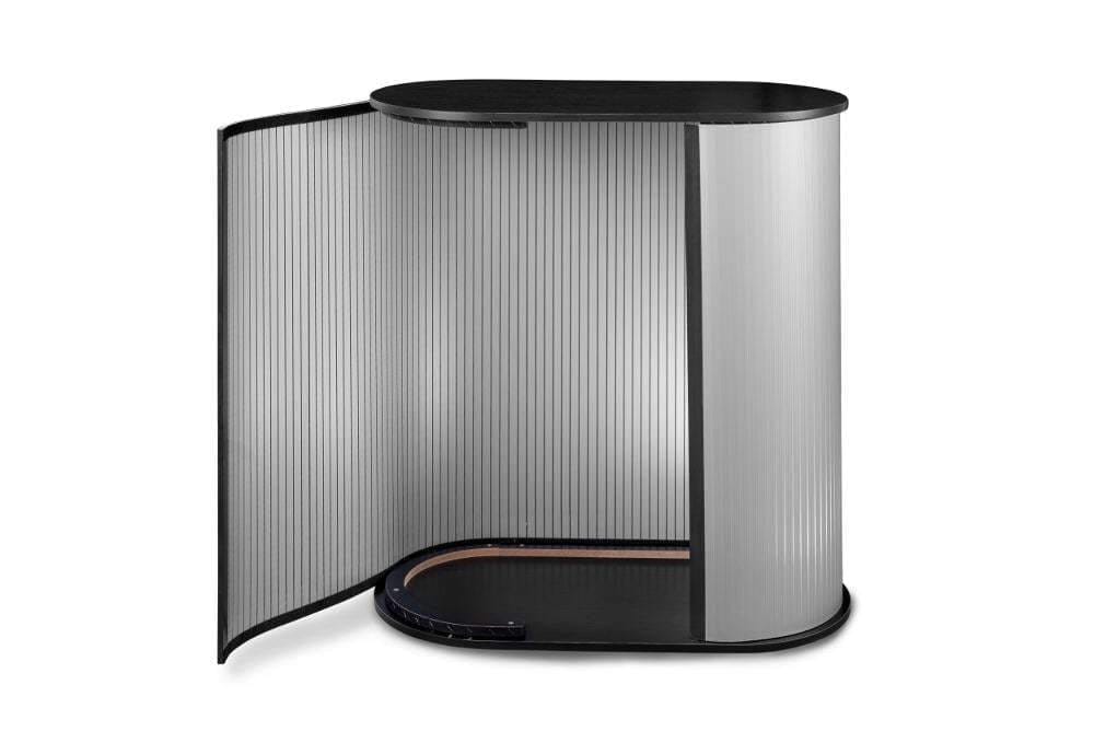 Ścianki tego systemu zostały wykonane z PVC komorowego, które montuje się do blatu i podstawy za pomocą rzepów. Dzięki tak prostej konstrukcji złożenie i rozłożenie trybunki nie wymaga użycia narzędzi i zajmuje dosłownie chwilę. Drewniana podstawa i mocny, drewniany blat gwarantują wysoką jakość, stabilność oraz długi czas użytkowania tego produktu.