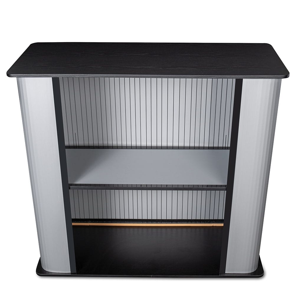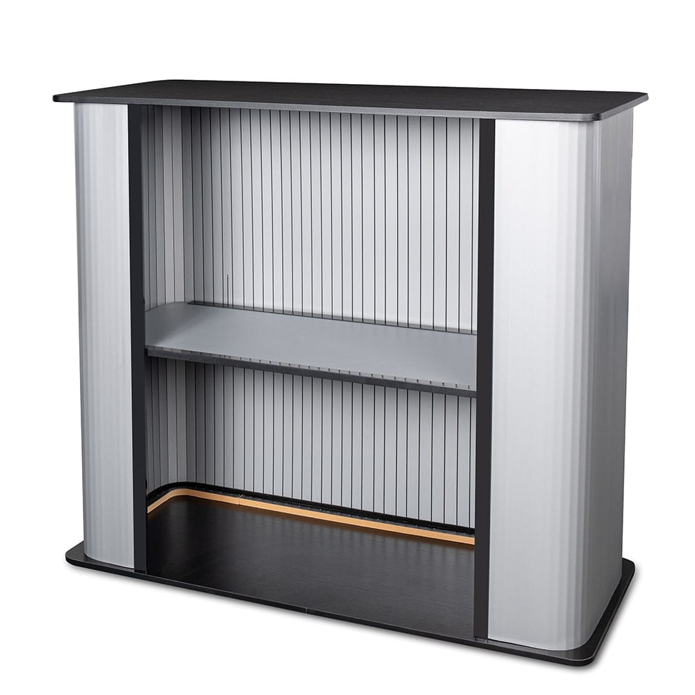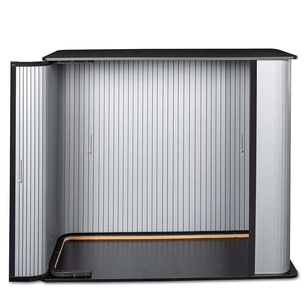 Ścianki tego systemu zostały wykonane z PVC komorowego, które montuje się do blatu i podstawy za pomocą rzepów. Dzięki tak prostej konstrukcji złożenie i rozłożenie trybunki nie wymaga użycia narzędzi i zajmuje dosłownie chwilę. Drewniana podstawa i mocny, drewniany blat gwarantują wysoką jakość, stabilność oraz długi czas użytkowania tego produktu.